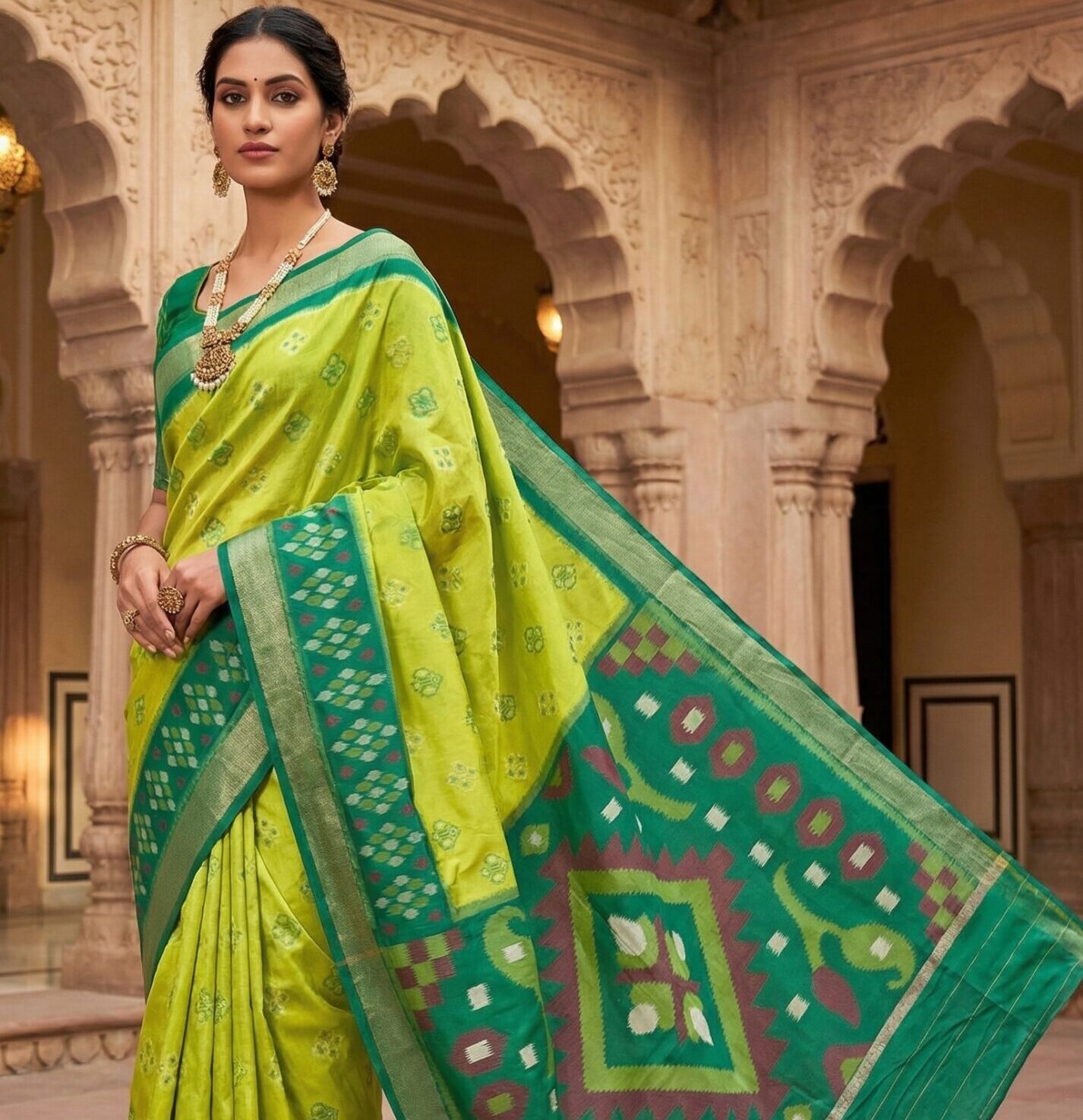 Iconic hand-tied Ikat patterns from Telangana—bold geometry and vibrant color stories in every drape.