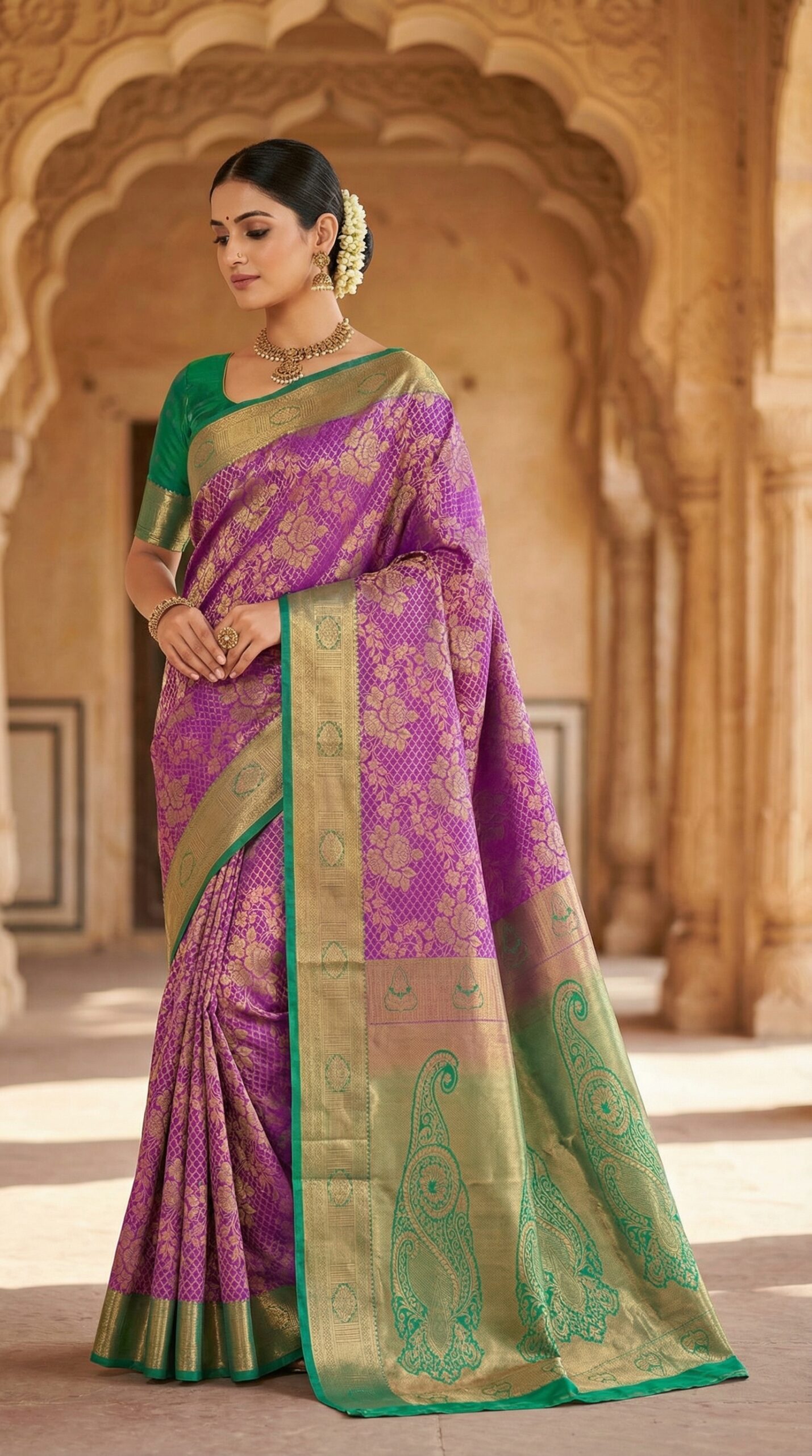 Royal Purple & Green Bridal Kanchipuram Silk Saree