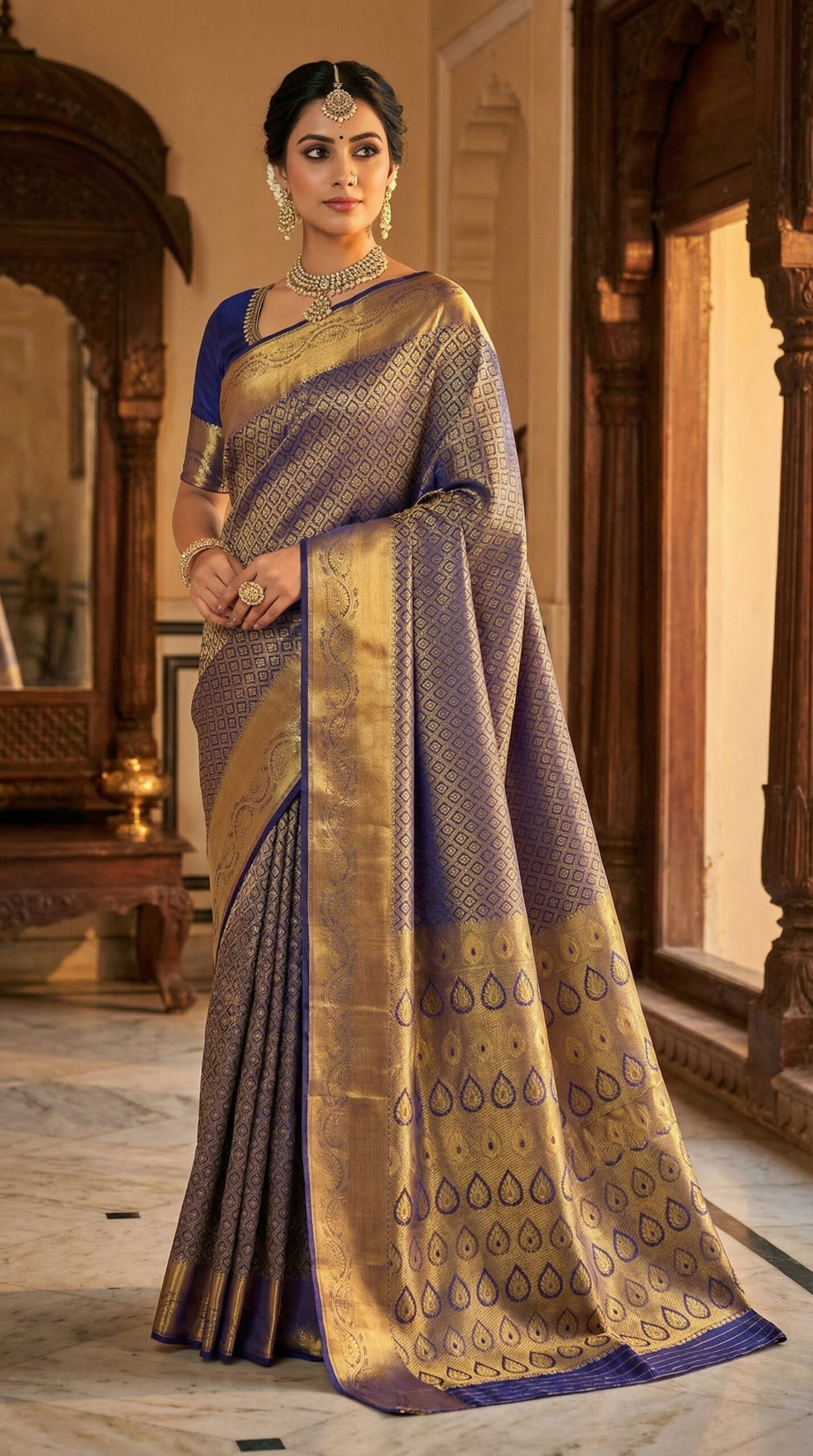 Royal Violet & Gold Bridal Kanchipuram Silk Saree